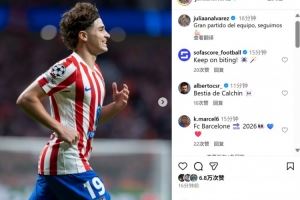 本场比赛阿尔瓦雷斯1球2助攻,赛后他也在个人社媒晒出本场庆祝照片,配文写道:“全队拿出精彩表现,让我们继续加油!”